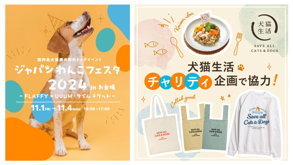 UUUM株式会社、株式会社FLAFFY、株式会社タイムチケットの3社協業による国内最大規模の野外ドッグイベントには、延べ約2万人の愛犬家とその家族が来場し、新しいペットイベントの形を提示した。